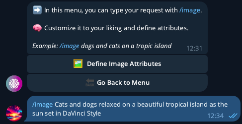 ### 2.) Tap on 🧠 Generate Image 🧠 and type your request with `/image`